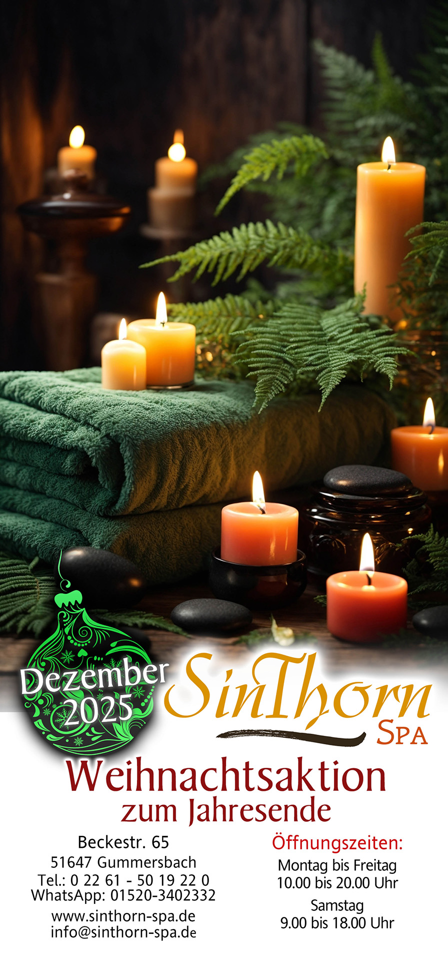 Wir suchen um unser Team zu erweitern neue Mitarbeiter mit Vorkenntnissen im Wellness- und Spa-Bereich. Wenn Sie Interesse haben, so melden Sie sich einfach um einen Vorstellungs Termin zu vereinbaren unter 02261-5019220 oder info@sinthorn-spa.de.